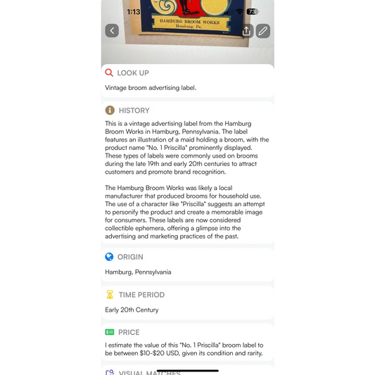 Rare Antique Vintage Priscilla Broom Label Excites Collectors