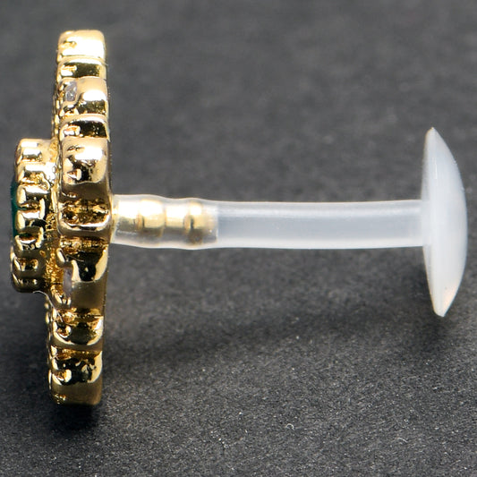 16G 5/16 Green Gem Classic Cross PTFE Bioplast Labret Monroe Tragus