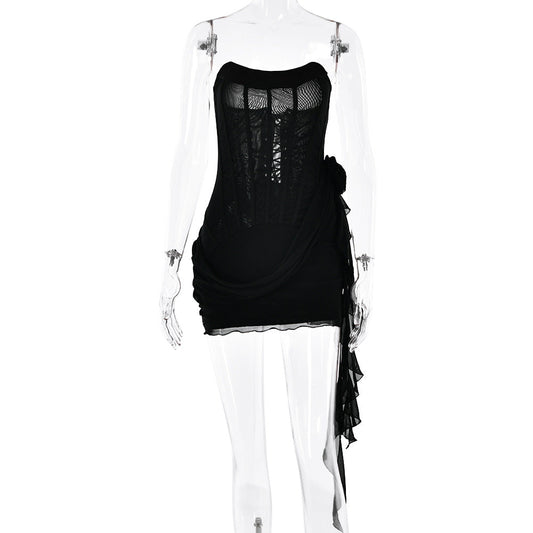 Dress Tube Top See Through Sleeveless Short Sexy Sexy Tight Dress