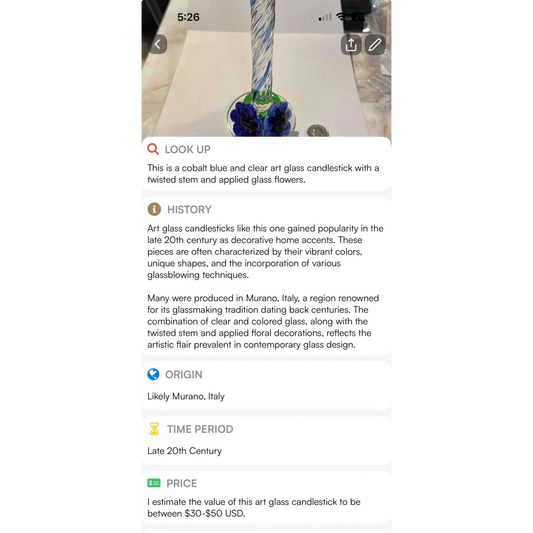 Stunning Blue Art Glass Candlesticks with Twisted Stems and Flowers