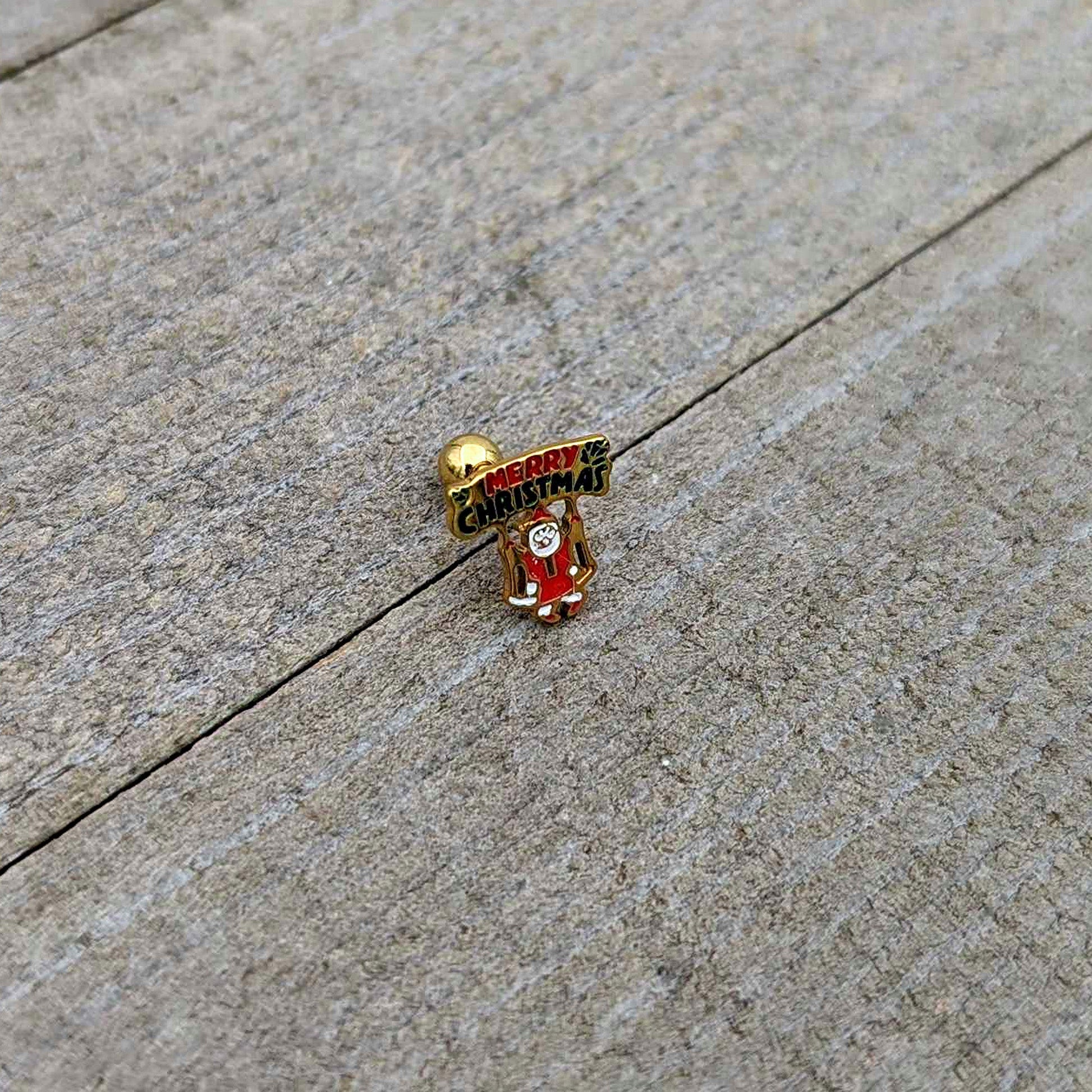 16G 1/4 Gold Tone Merry Christmas Santa Inlay Cartilage Earring