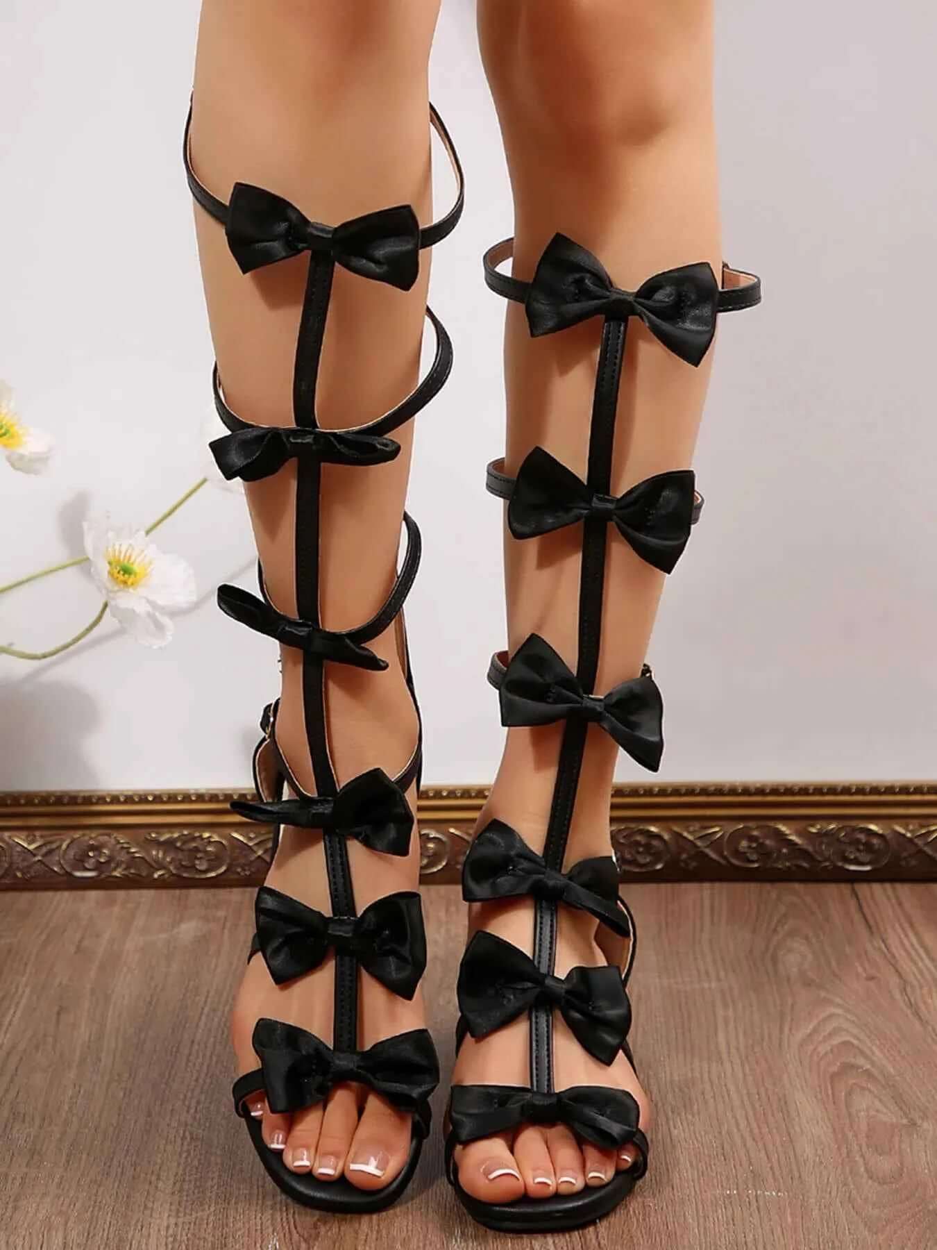Chic Bow Heels: Strappy Sandals