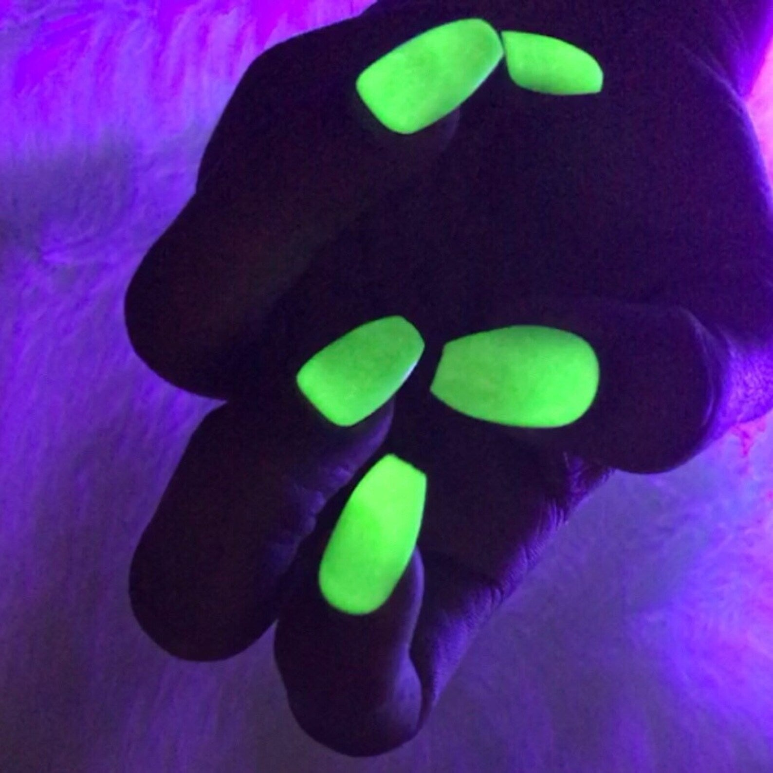 Glow-in-the-Dark Coffin Neon Yellow Nails | Instant Glam