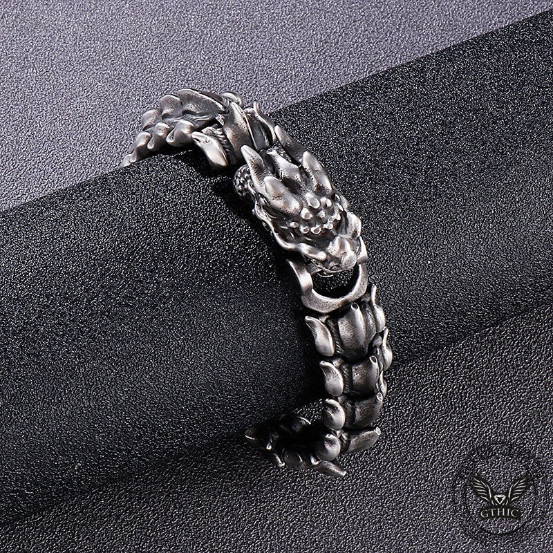 Made from stainless steel, this bracelet features a dragon theme, creating a look that is both sinister and rugged, perfect for any punk dragon fan. Men's stainless steel bracelet, punk dragon bracelet. This is a comfortable and masculine bracelet that you won't be disappointed with. Buy it now!