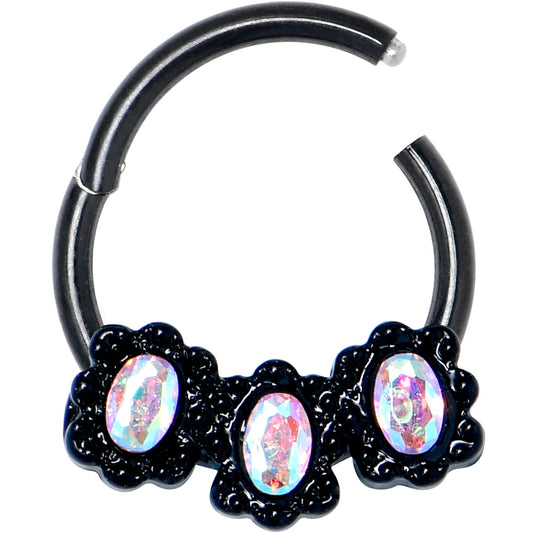 16G 3/8 Aurora Gem Black Magical Ovals Hinged Segment Ring