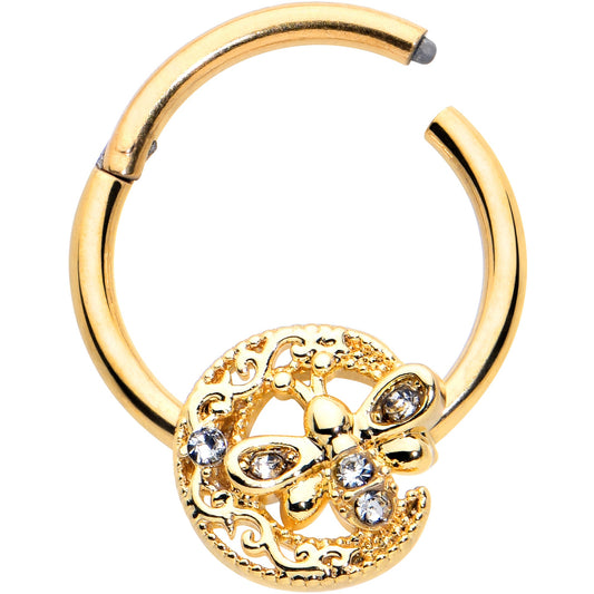 16G 3/8 Clear Gem Gold Tone Lunar Dragonfly Hinged Segment Ring