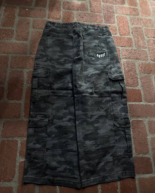 Graveyard Shift Cargo – Gothic Punk Wide-Leg Y2K Jeans for Rebels Who Don’t Compromise