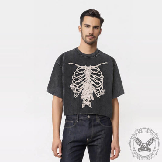 Vintage Washed Creepy Bat Skeleton T-shirt