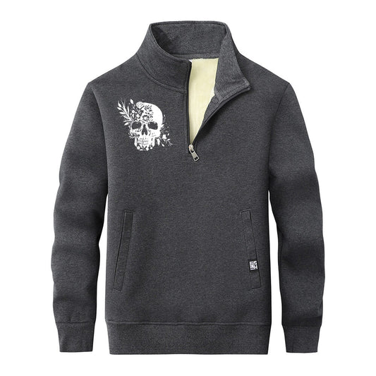 Multicolor Floral Skull Stand Collar Zip Fleece Sherpa Sweatshirt
