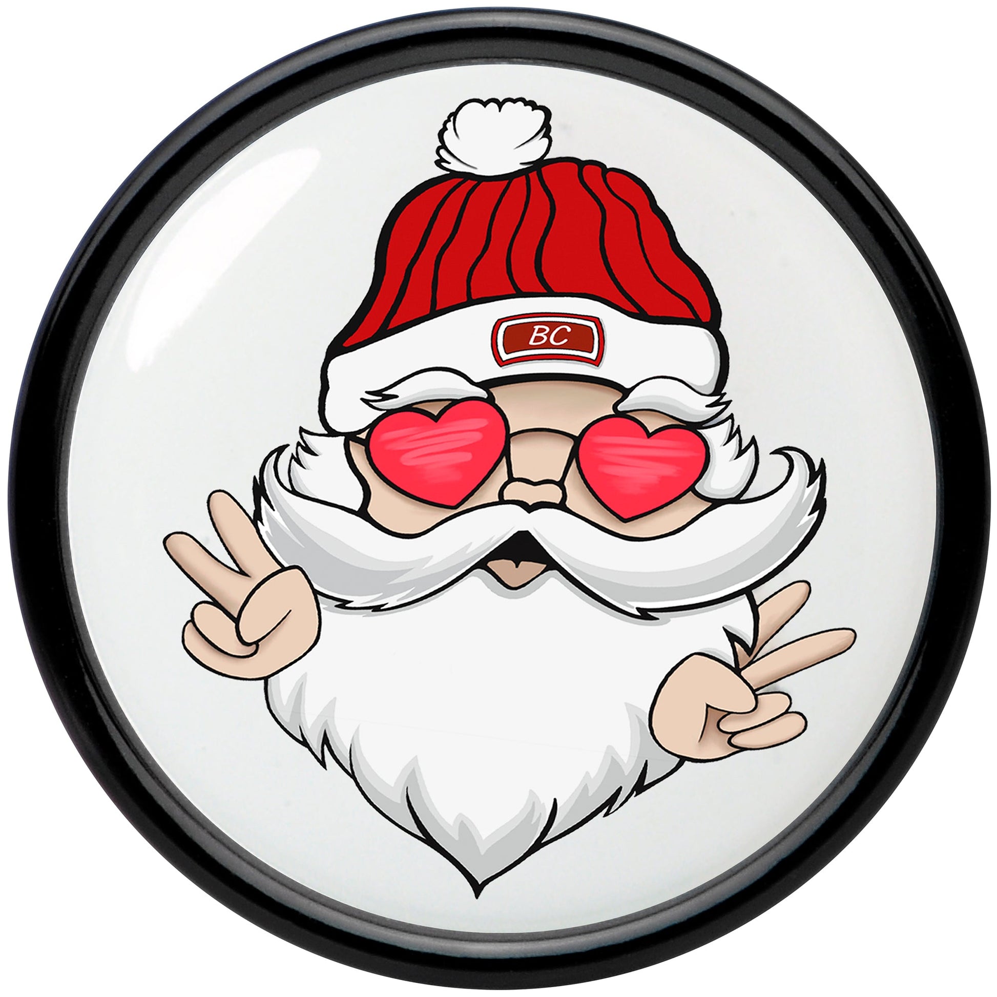 Fall in love with the peaced-out Santa Claus on these plugs for stretched lobes. They are made with acrylic and feature a double flare design for secure wear. Each one features a Santa Claus charm, with Santa flashing a double peace sign. The Santas also feature heart eyes, for the full effect of peace and love. You will be at peace with how much you love rocking these hippie Christmas double flare plug earrings. Sold as a set of two.