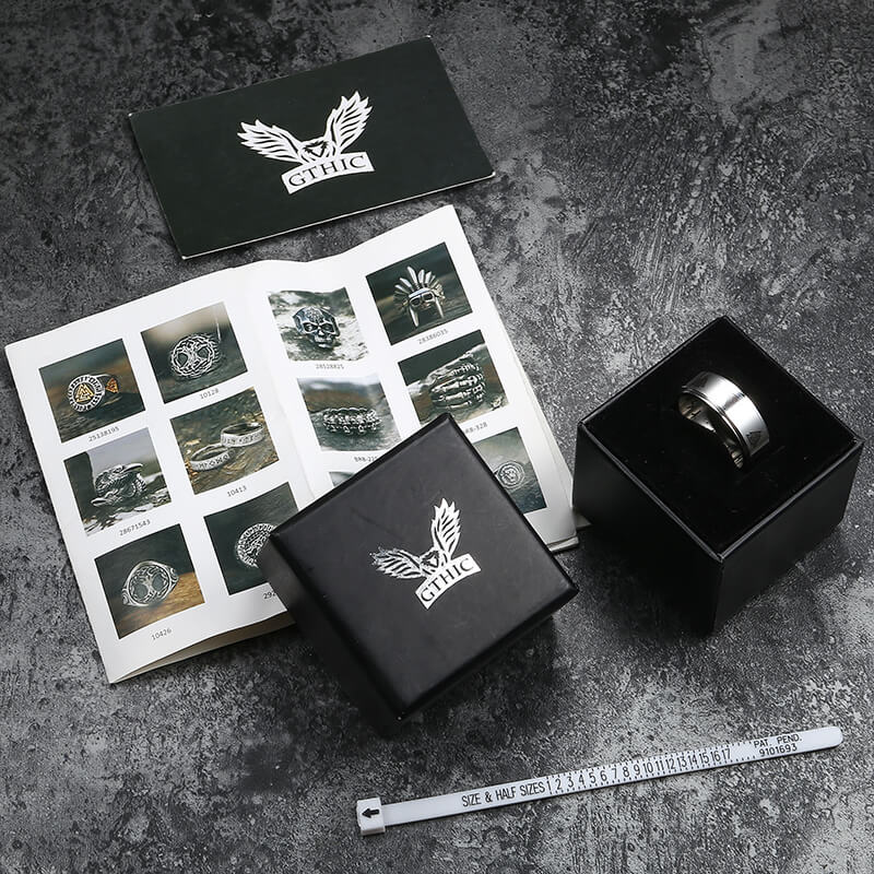 This ring is full of Viking elements. The rotatable outer ring is the valknut symbol, and the fixed ring is the Viking runes. The Valknut is most-commonly believed to be the symbol of these slain warriors. The exact meaning of the three interlocking triangle shapes is unknown. The Vikings at that time used runes to record and communicate, which played a very important role in daily life. You’ll be crazy if you’re a Viking fan!
