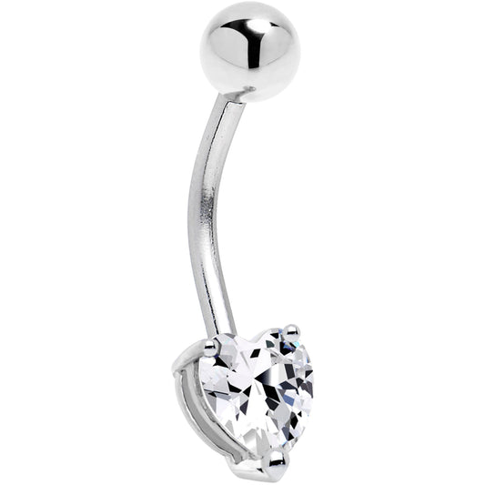 16G Solid 14K White Gold Cubic Zirconia Heart Solitaire Belly Ring