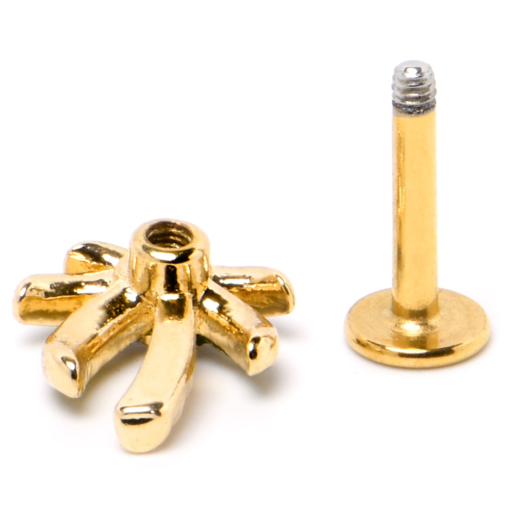 16G 1/4 Clear Gem Gold Tone Palm Tree Style Labret