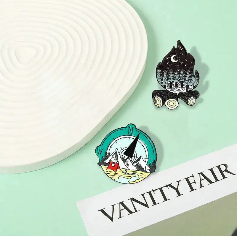 Camping Life Enamel Pin Outdoor Compass Canvas Shoe Bonfire Tent Motorhome Brooches Bag Lapel Pin Badge Jewelry Gift for Friends