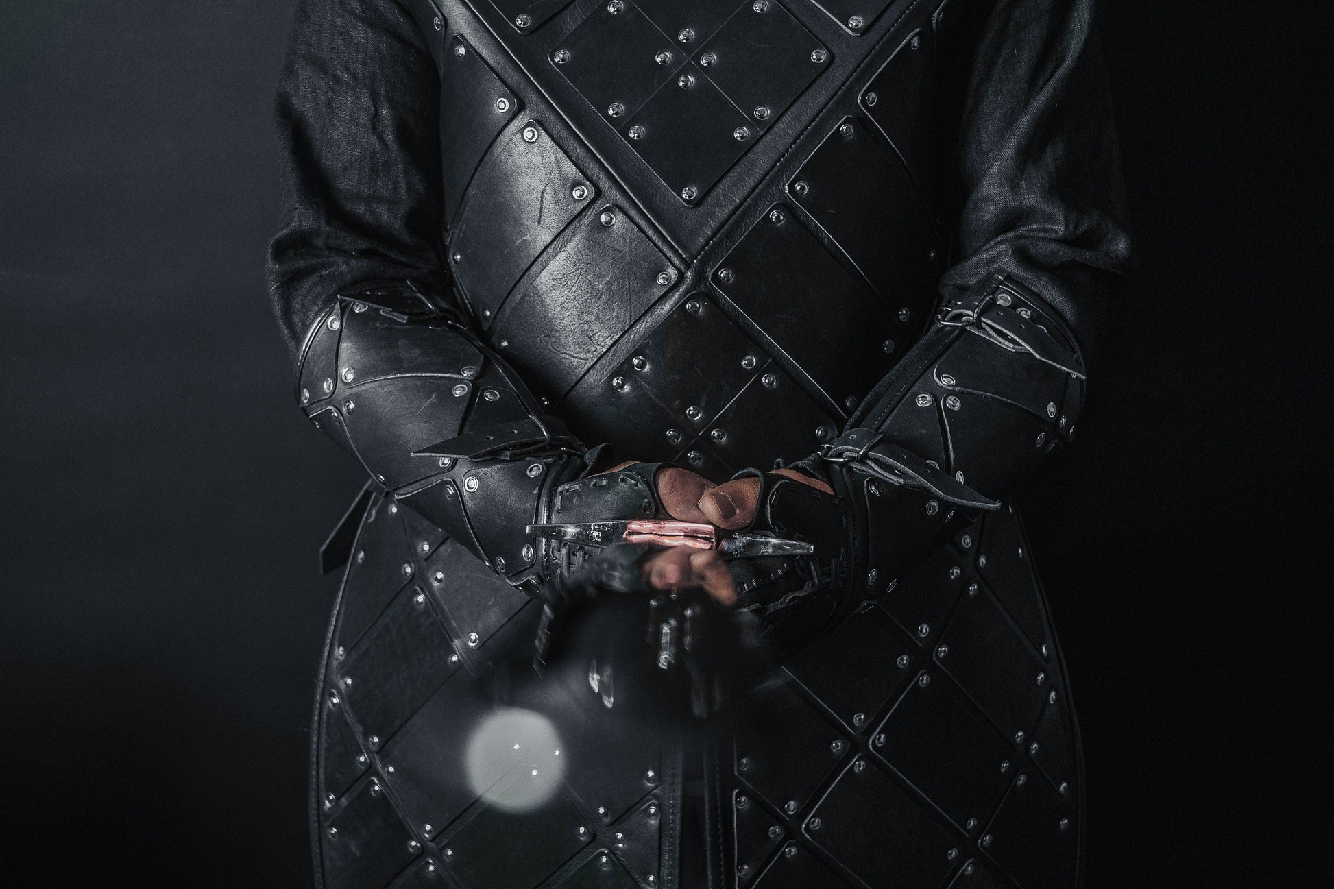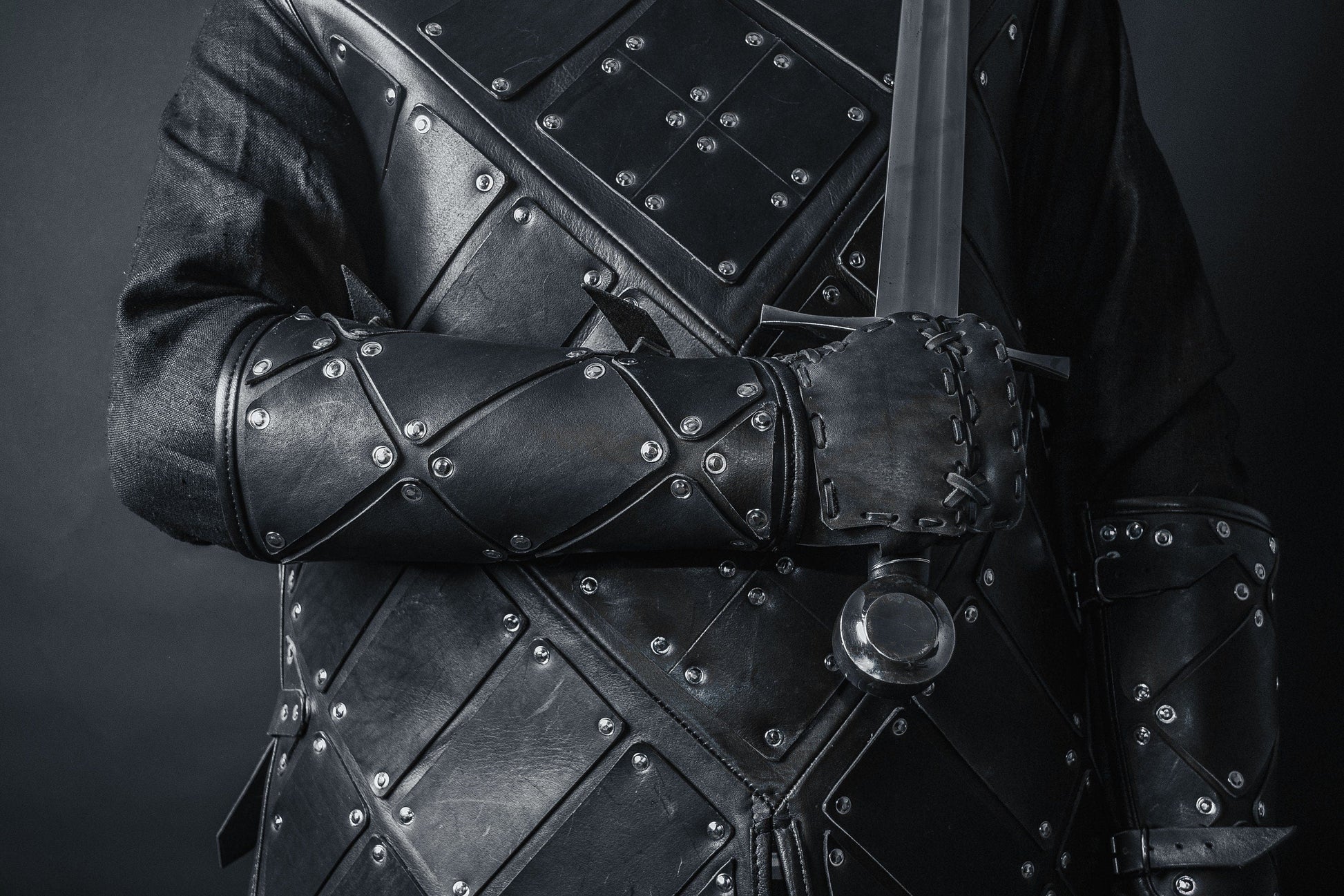 Medieval Leather Bracers for LARP made by SokolWorkshop. These bracers will be a great part of your viking armor or outfit. Artificial aging creates the effect of old age. Can be made of brown or black leather, with brass or stainless steel accents.