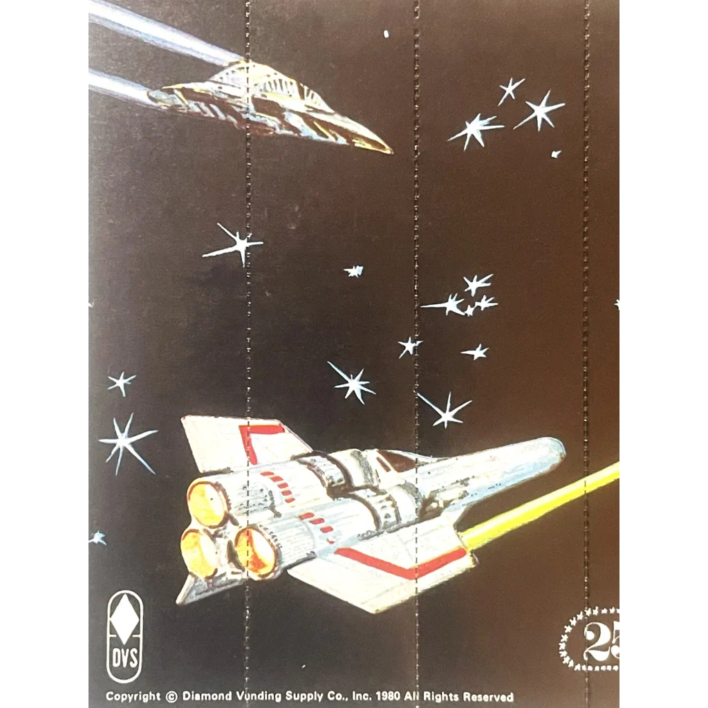 Measuring at 10" x 8 3/4" ~ Slight corner wear top right on the limited supply available. Doubt if you would notice on display but please see pictures and judge for yourself. This advertising display isn't just visually captivating; it harbors an enigmatic feature that will leave you starry-eyed - it's perforated! While the true purpose of these mysterious perforations remains shrouded in the mists of time, they add an extra layer of intrigue to this already fascinating piece of Galactic Battleships memorabilia. Imagine the stories this display could tell about its journey through the cosmos of pop culture!
