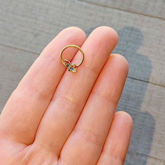 16G 3/8 Red Blue Gem Gold Tone Butterfly BCR Captive Ring