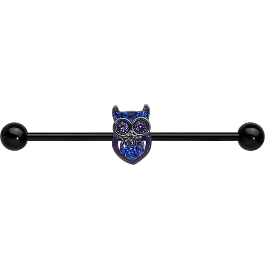 14G Blue Purple Gem Black Opulent Owl Industrial Barbell 38mm