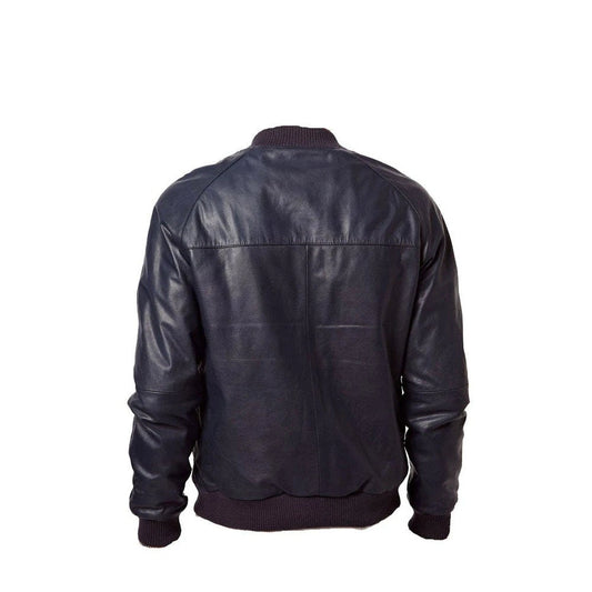 Handmade Navy Blue Bomber Style Leather Jacket