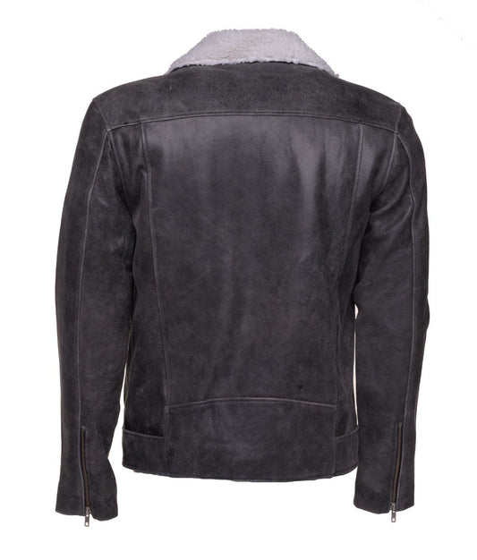 Handmade Vintage Grey Biker Leather Jacket With Sherpa Lining