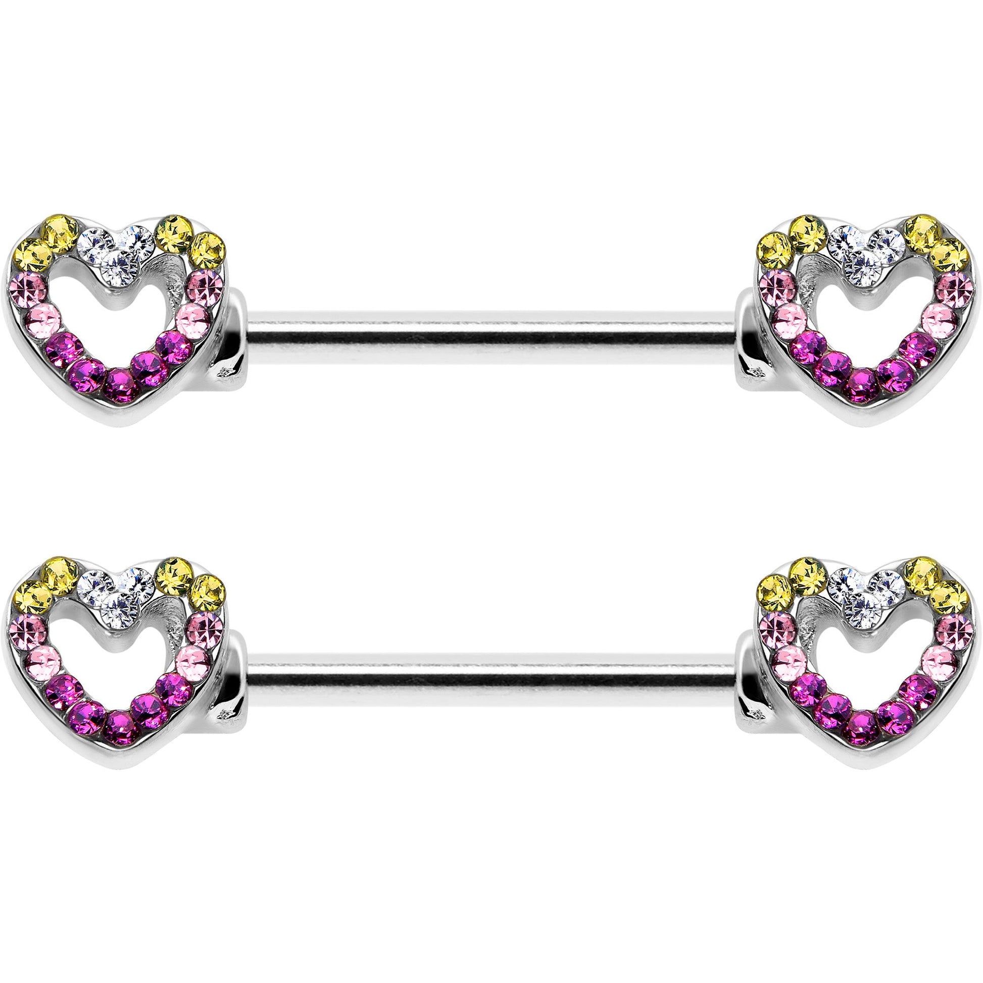 14G 9/16 Romance Gem Open Heart Barbell Nipple Ring Set