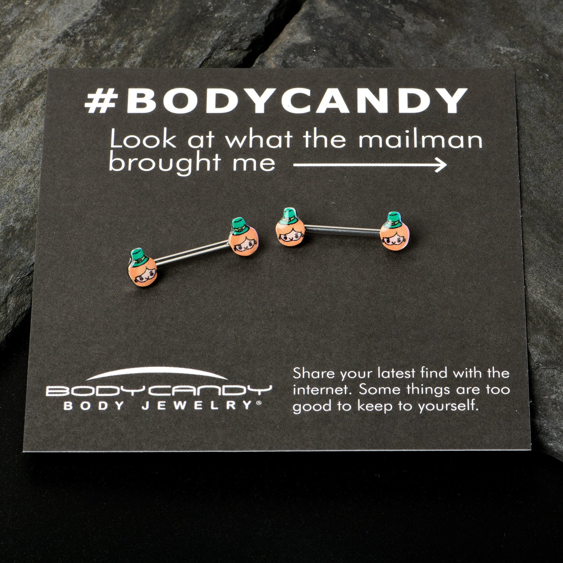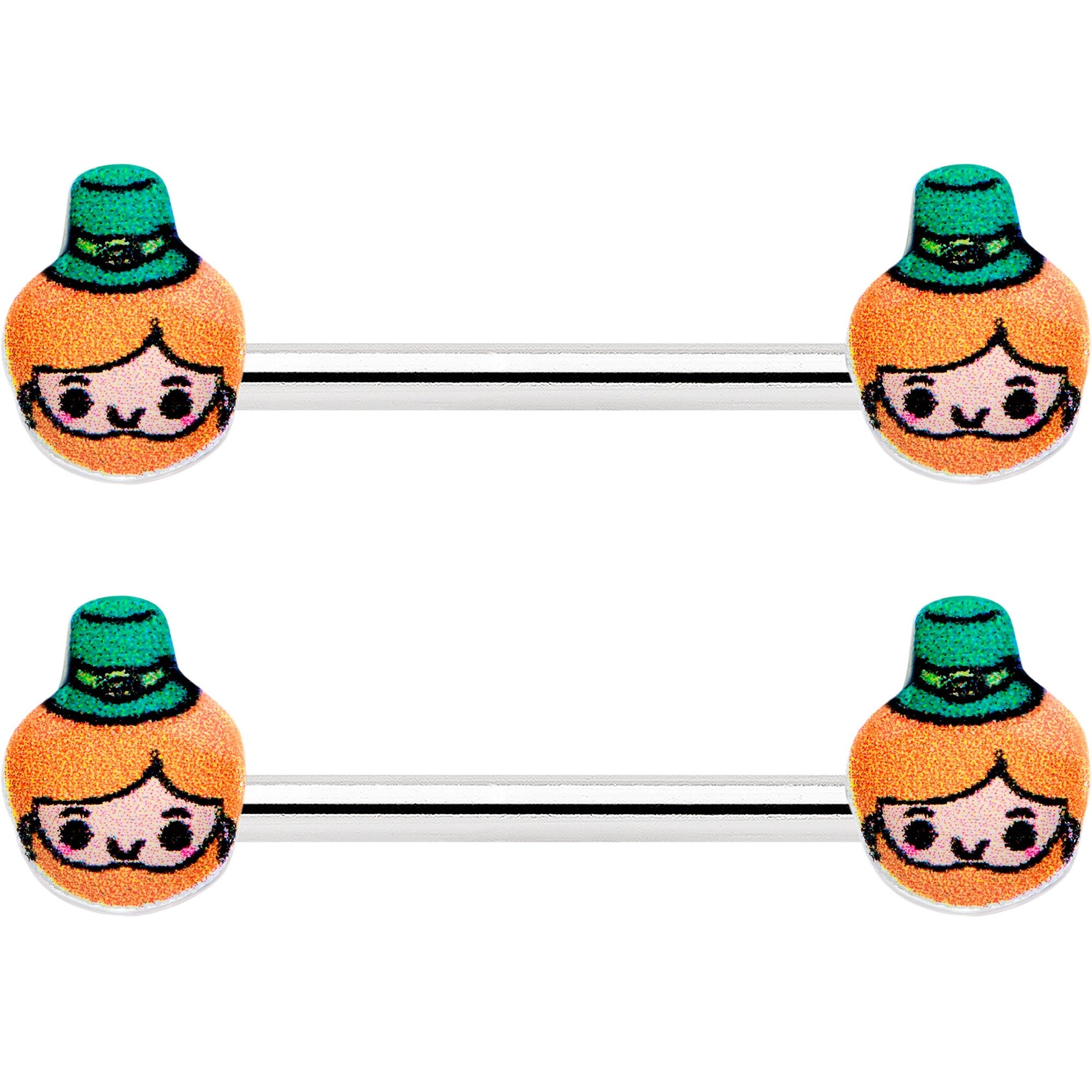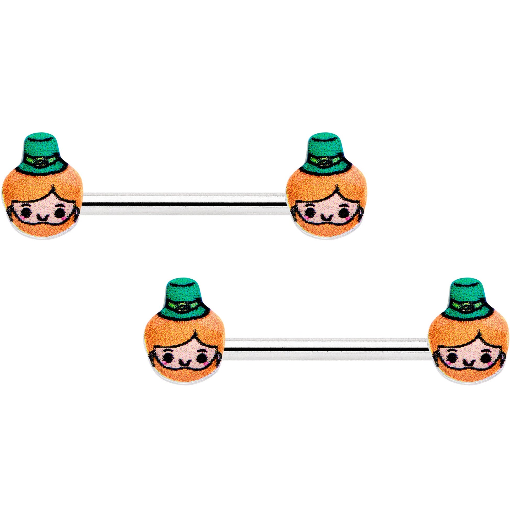 14G 9/16 Sweet Happy Leprechaun St Patricks Day Nipple Ring Set