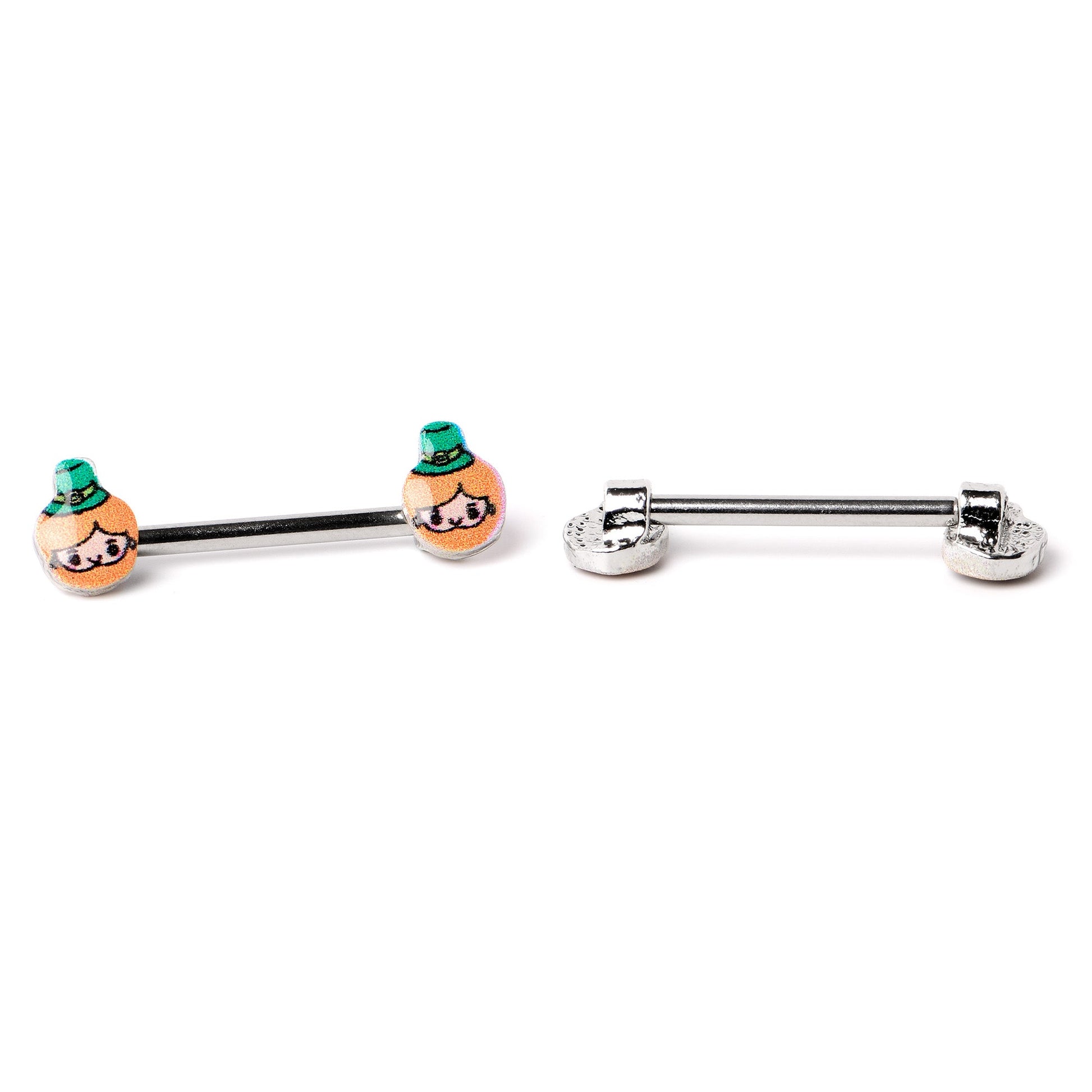 Add some leprechaun luck to your look with this 14 gauge nipple jewelry! It's made with 14mm durable 316L surgical grade stainless steel straight barbells. Each of the ends features a leprechaun charm, sporting a top hat with simple detailing. They also feature a red beard and simple, cheerful features for a festive expression that's perfect for St. Patrick's Day! Whether you're Irish or just Irish in spirit, these nipple piercing rings will make you happy too! Sold as a set of two.