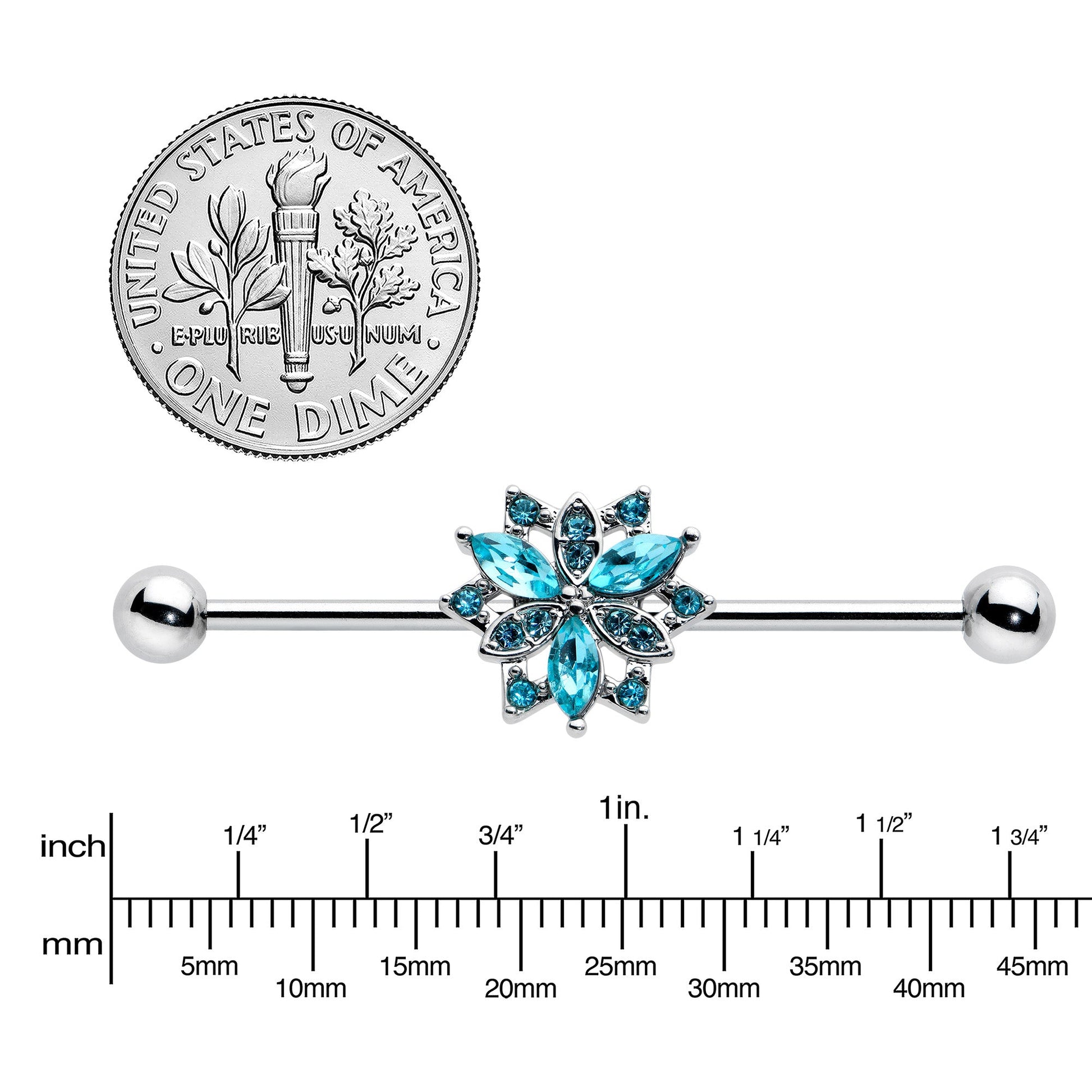 14 Gauge Blue CZ Gem Ornate Snowflake Industrial Barbell 38mm