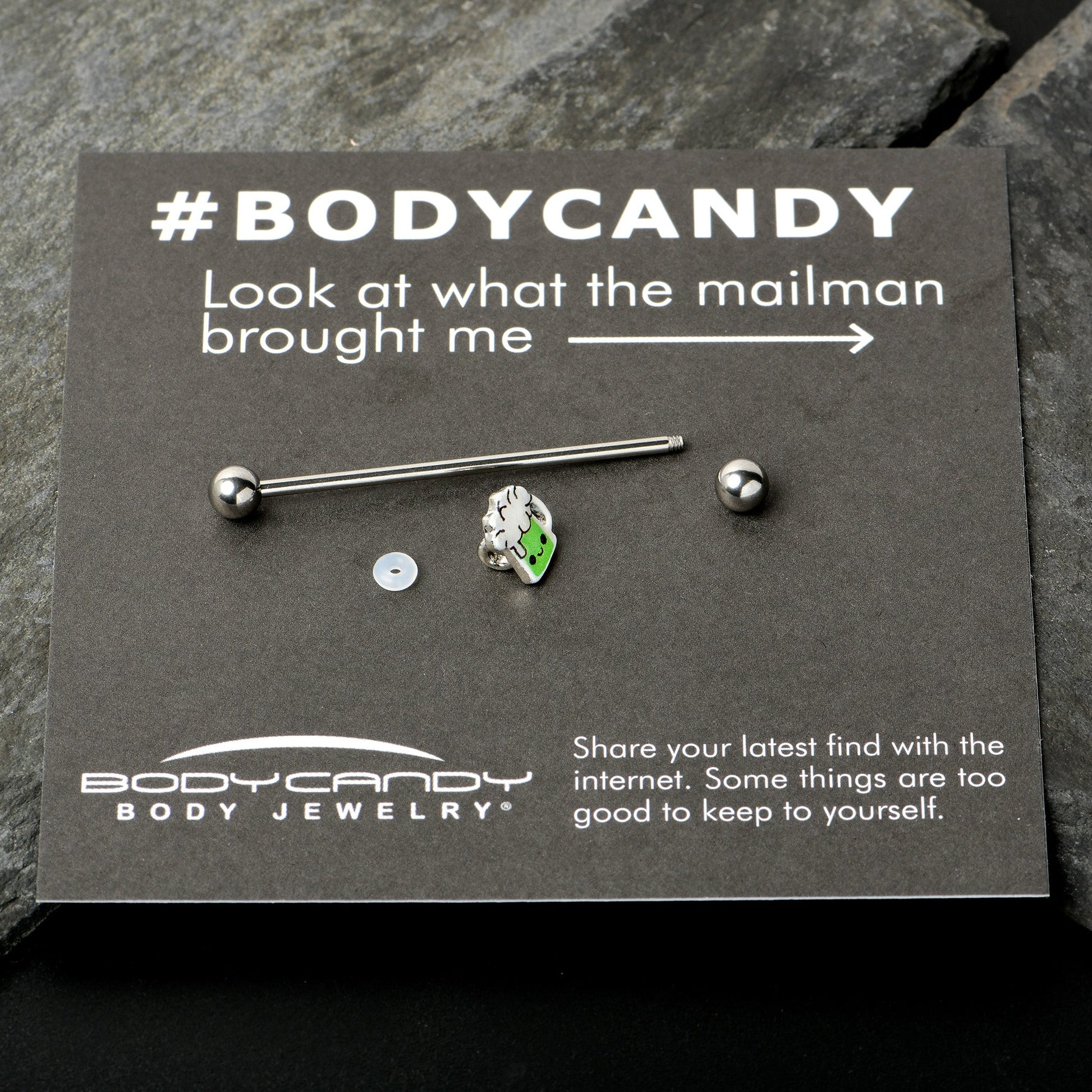 This St Patrick's Day, belly up to the bar with this 14 gauge helix barbell! It's made with a 1 1/2" durable 316L surgical grade stainless steel straight barbell with 5mm ball ends. It features a green beer charm with white detailing and a happy, smiling expression. You can even slide it up and down the length of the barbell for the perfect look! If you're looking for a bit of green to wear this St. Patrick's Day, have no fear - we've got some beer for your piercings with this festive barbell earring!