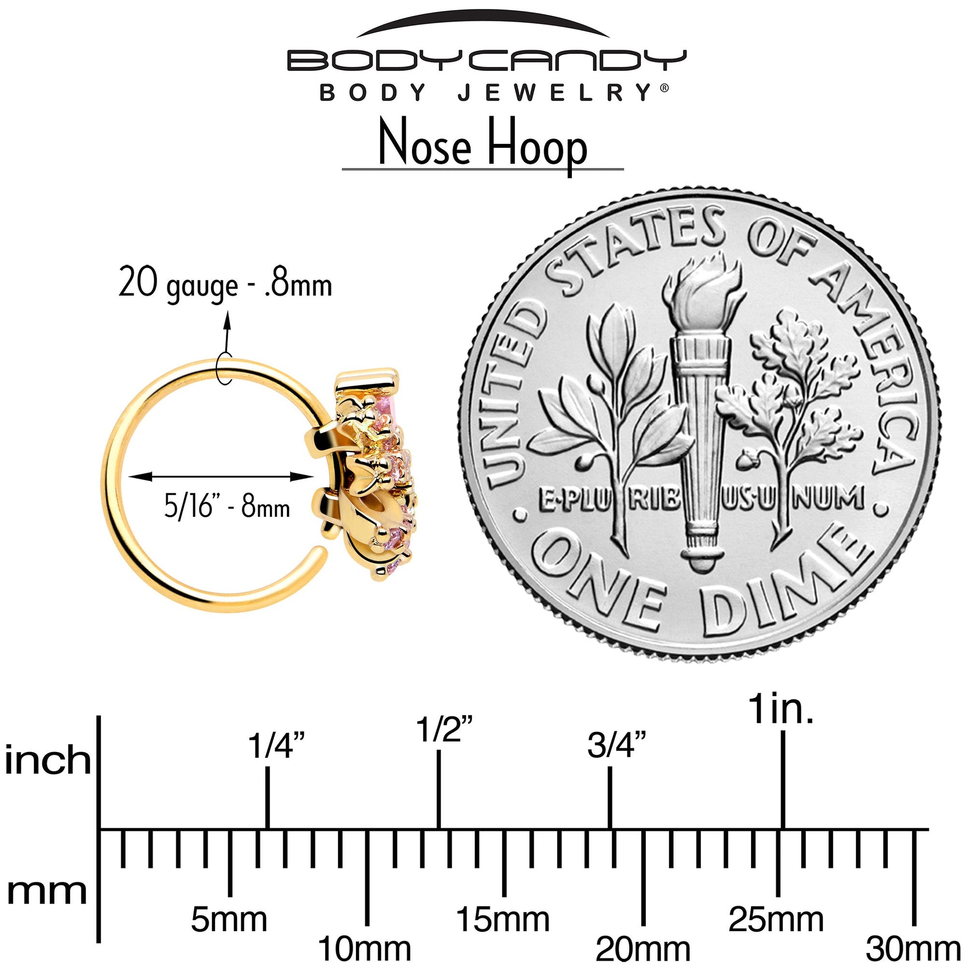 20G 5/16 Pink CZ Gem Gold Tone Abstract Ribbon Nose Hoop
