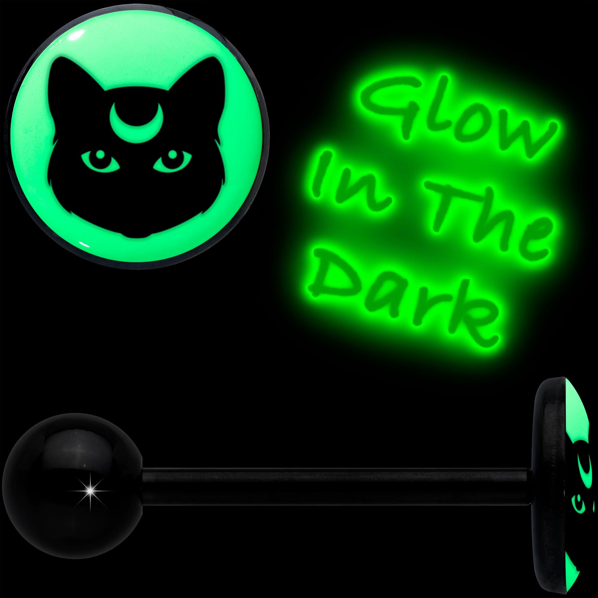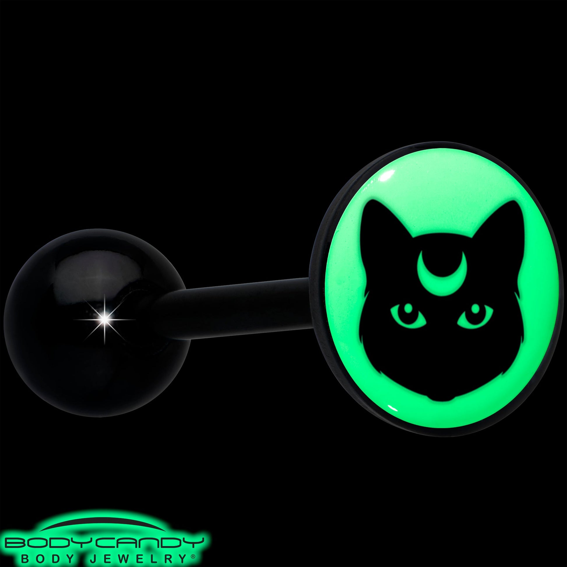 Glow in the Dark Black Anodized Mystic Kitty Cat Barbell Tongue Ring