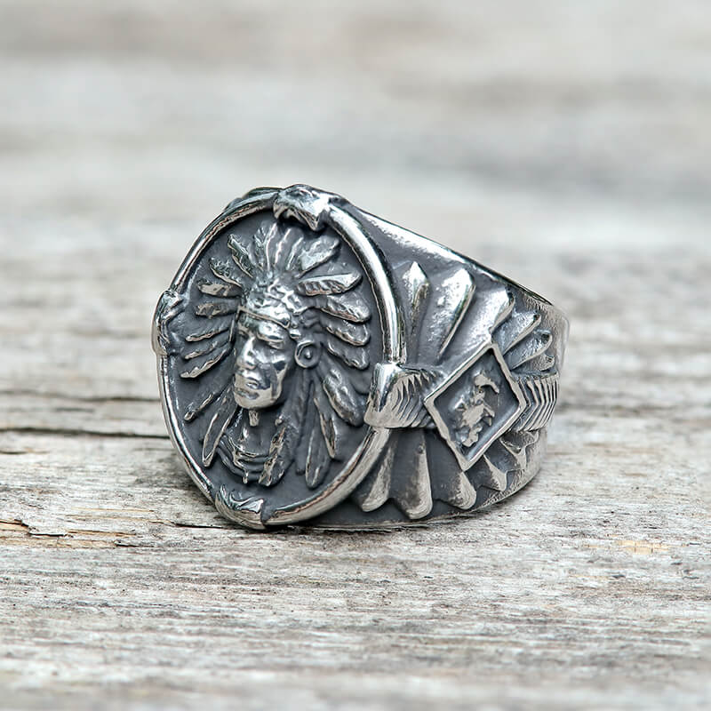 Experience the rich cultural heritage with our Indian Chief Stainless Steel Ring. The intricate design of the Indian Chief with headdress is crafted with precision and attention to detail. Made with high-quality stainless steel, this ring is built to last and withstand everyday wear. The ring is a perfect accessory to add to your collection or gift to someone who loves Indian heritage. Order now and embrace the beauty of Indian culture!