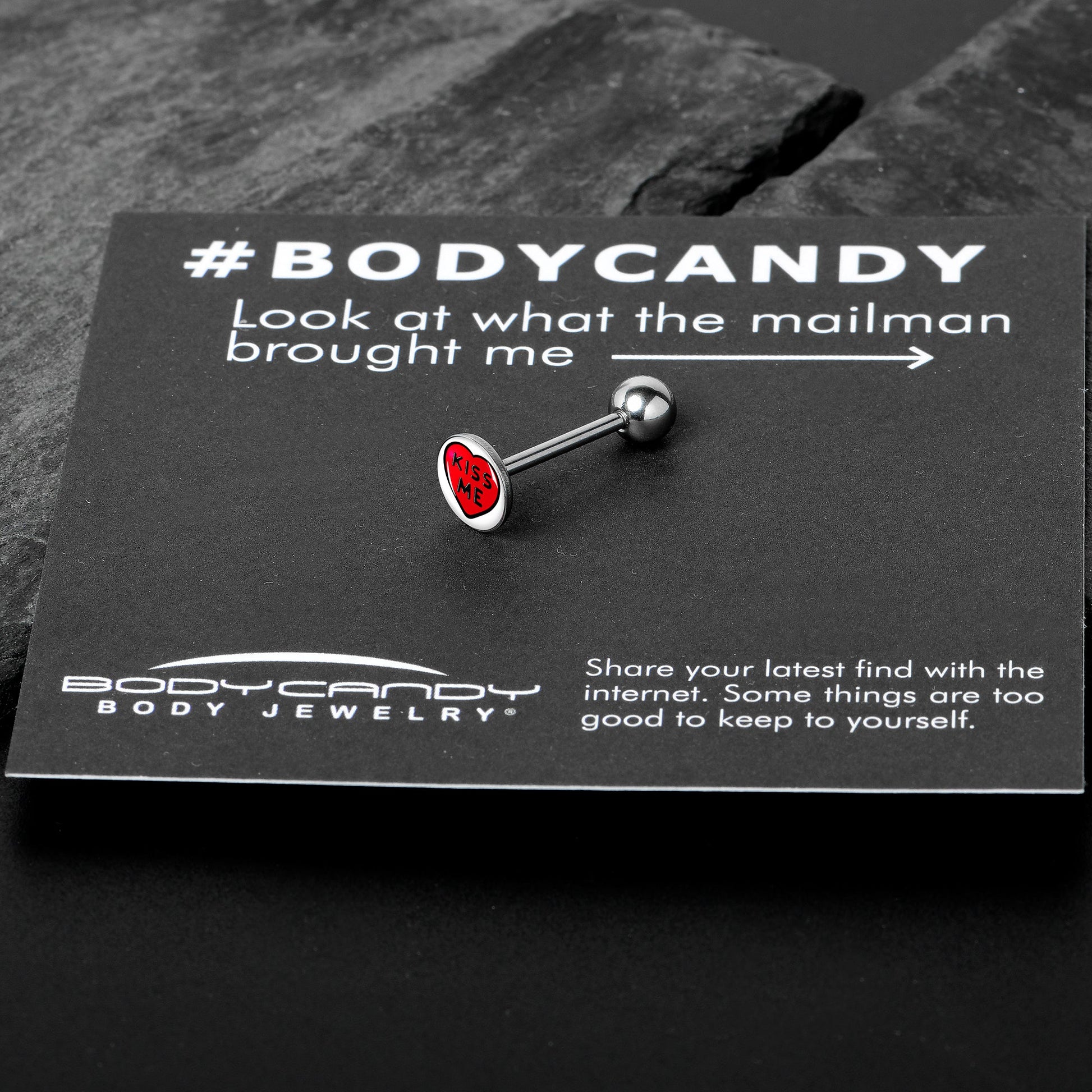 Kiss Me Candy Heart Barbell Tongue Ring by Onyx O