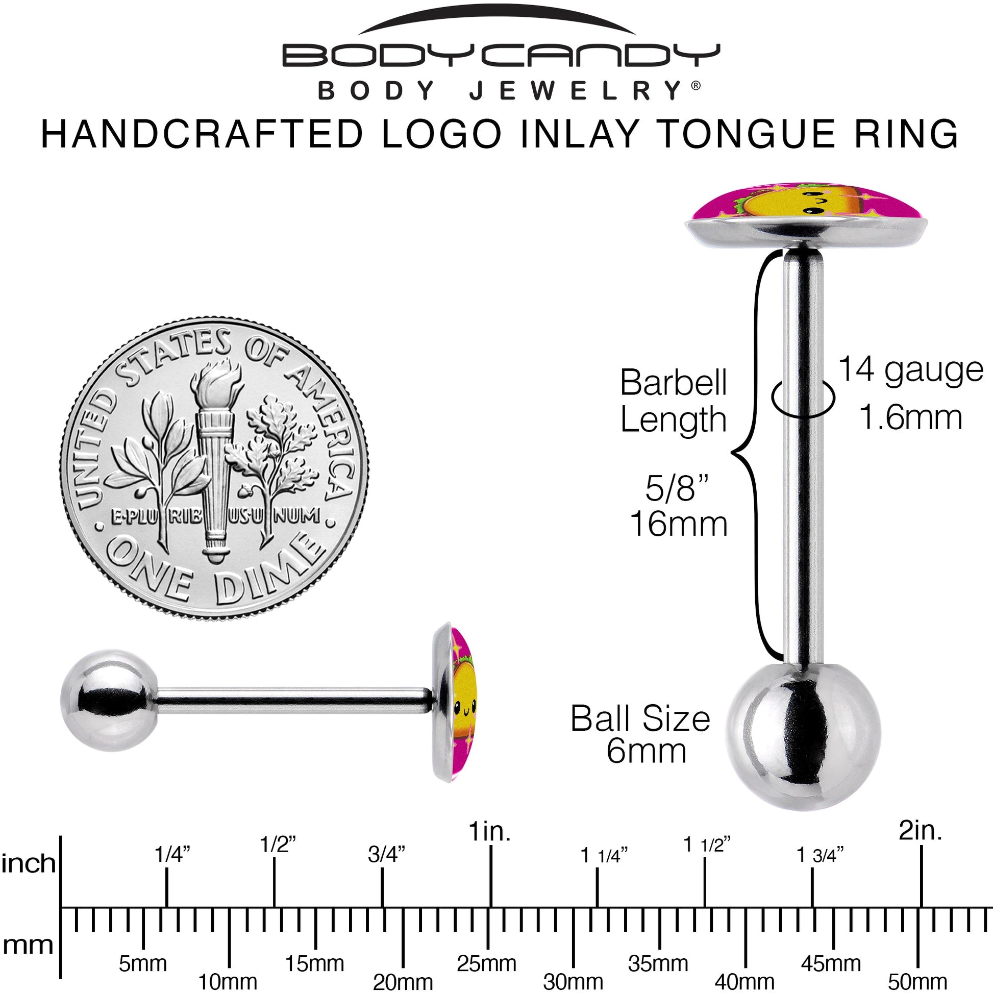 Get your celebration on in tasty style with this whimsical 14 gauge taco tongue jewelry. It's made with a 5/8 inch 316L surgical grade stainless steel straight barbell with a 6mm bottom ball end. It's even hypoallergenic. You'll be looking delicious with this cheerful taco tongue piercing ring.