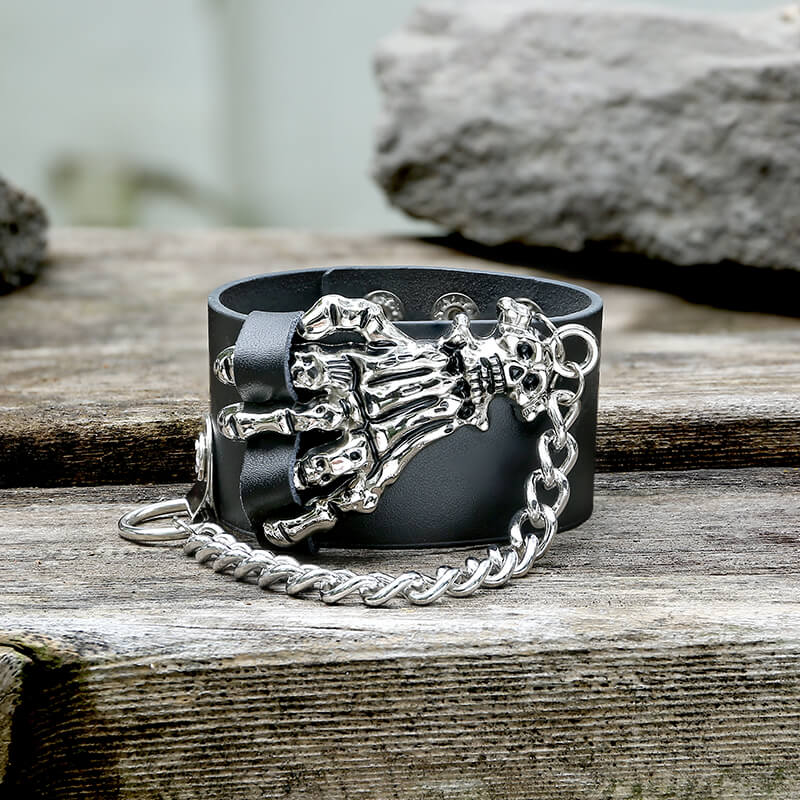 Introducing the Punk Skeleton Hand Alloy Bracelet, crafted with a unique punk style and made from an alloy material for long-lasting durability. Its unique design makes it a classy and eye-catching choice for any ensemble. Add a touch of punk style to your look today.