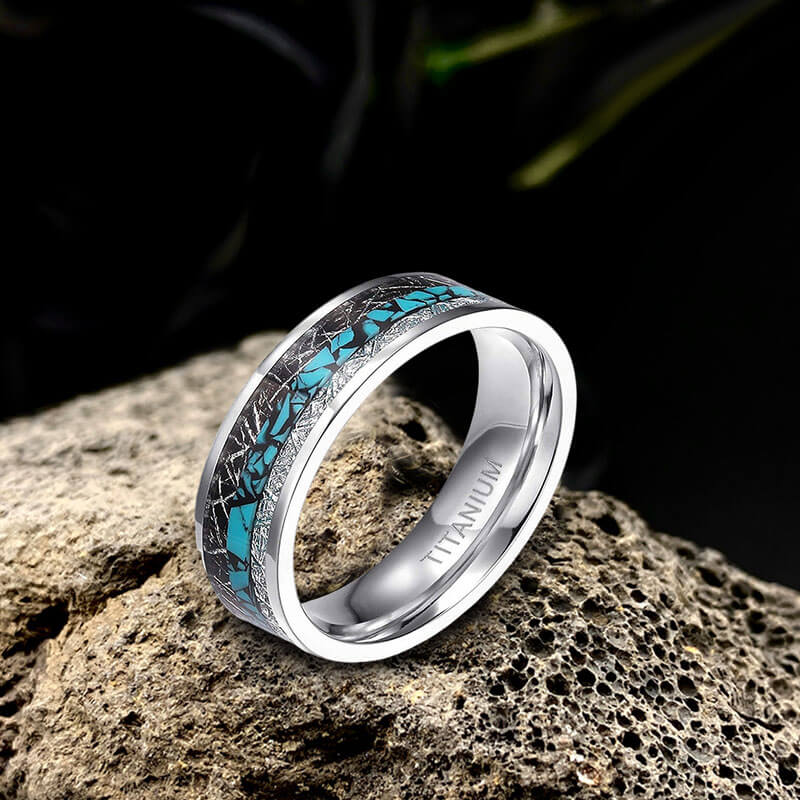 Simple Turquoise Inlaid Titanium Engagement Ring