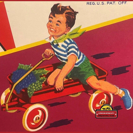 Rare 1950s Red Wagon Antique Vintage Crate Label from California
