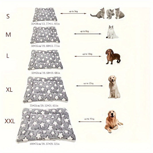 Warm Winter Pet Bed Mat - Soft and Thick Square Dog Crate Pad with Star Pattern, Polyester Fiber Fill, Suitable for Extra Small to Large Dogs - Insulated Cat and Dog Blanket for Kennel and Home Use