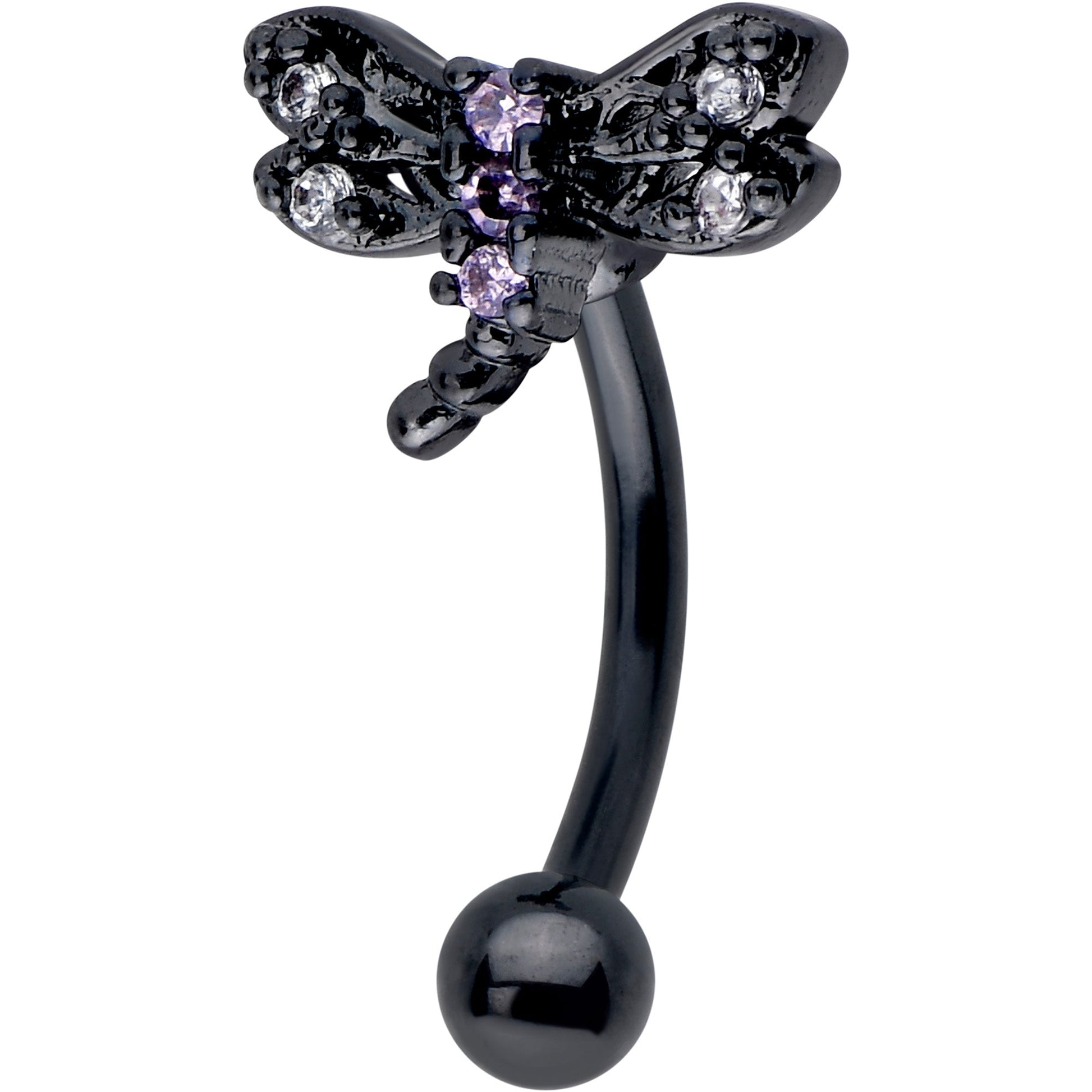 16G 5/16 Purple CZ Gem Black Night Dragonfly Curved Eyebrow Ring