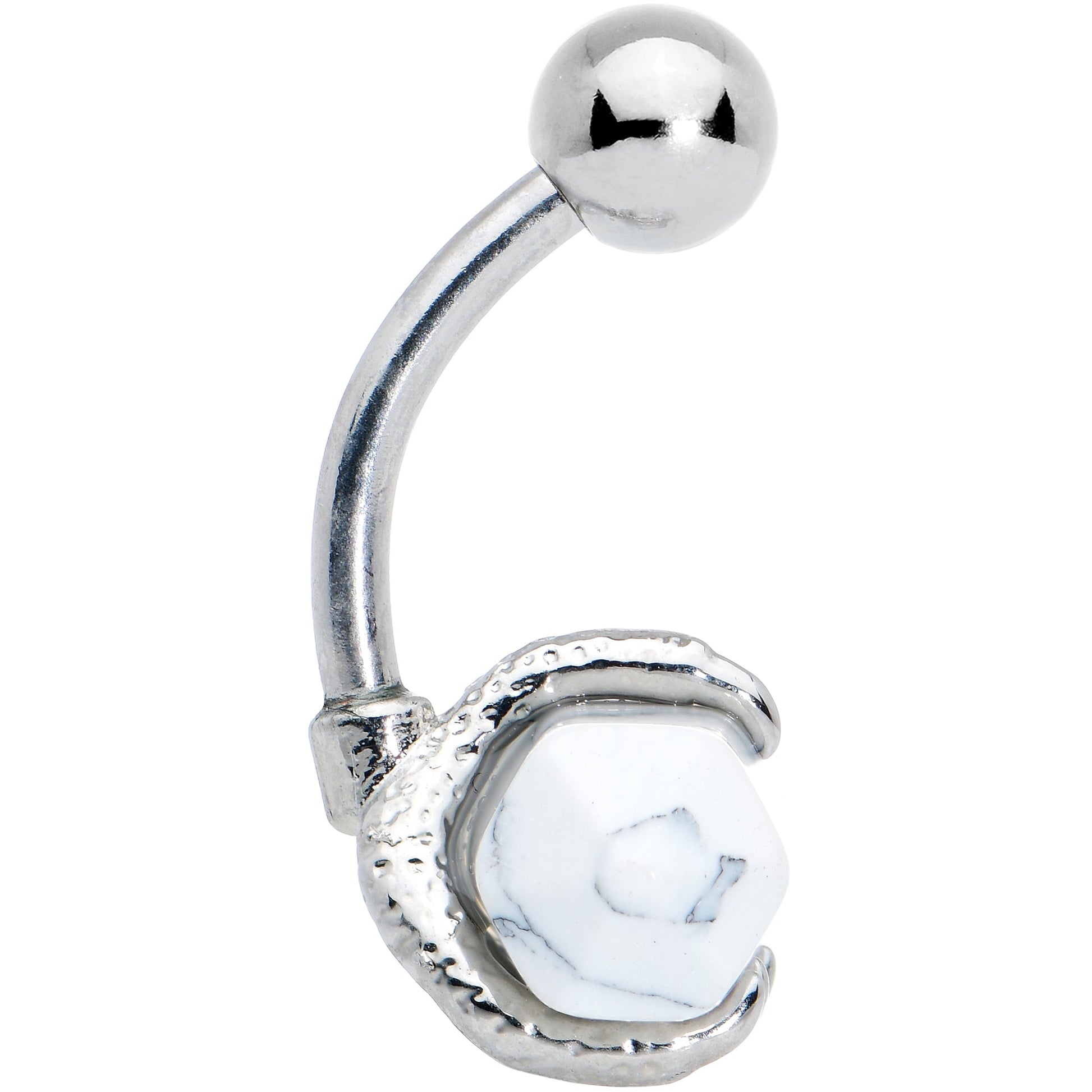If you're into incense, this 14 gauge navel ring is sure to give you a happier aura! It's made with a 3/8" durable 316L surgical grade stainless steel curved barbell with a 5mm top ball end. Bound to the bottom end of the barbell is a white howlite, with its classic obelisk shape held in a claw-style setting. While we can't claim it has any magical powers, it will certainly look magical in your belly button piercing!