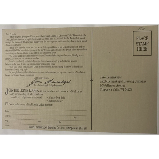 Rare Vintage Leinenkugel's Beer Postcard from Chippewa Falls