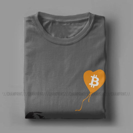 Awesome Bitcoin Balloon Girl Banksy T-Shirt For Men 100% Cotton Crypto BTC Short Sleeve Tee Shirt Graphic Clothes