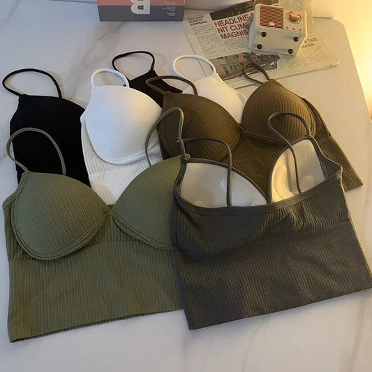 Knitted Binder Chest Spaghetti Strap Corset Camisole Crop Top With Built In Bra Sexy Club Vest