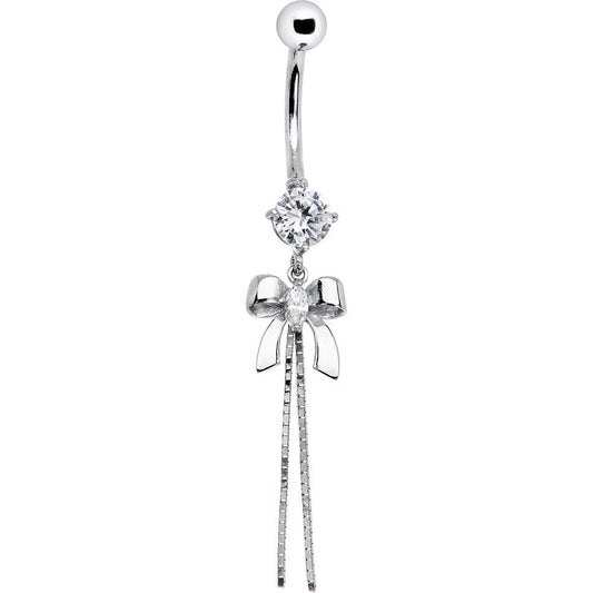 16G Solid 14k White Gold Cubic Zirconia Bow Belly Ring