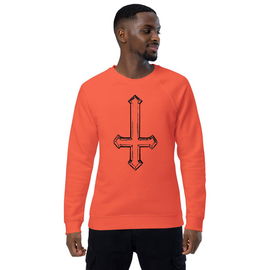 Upside Down Cross Sketch Unisex organic raglan sweatshirt