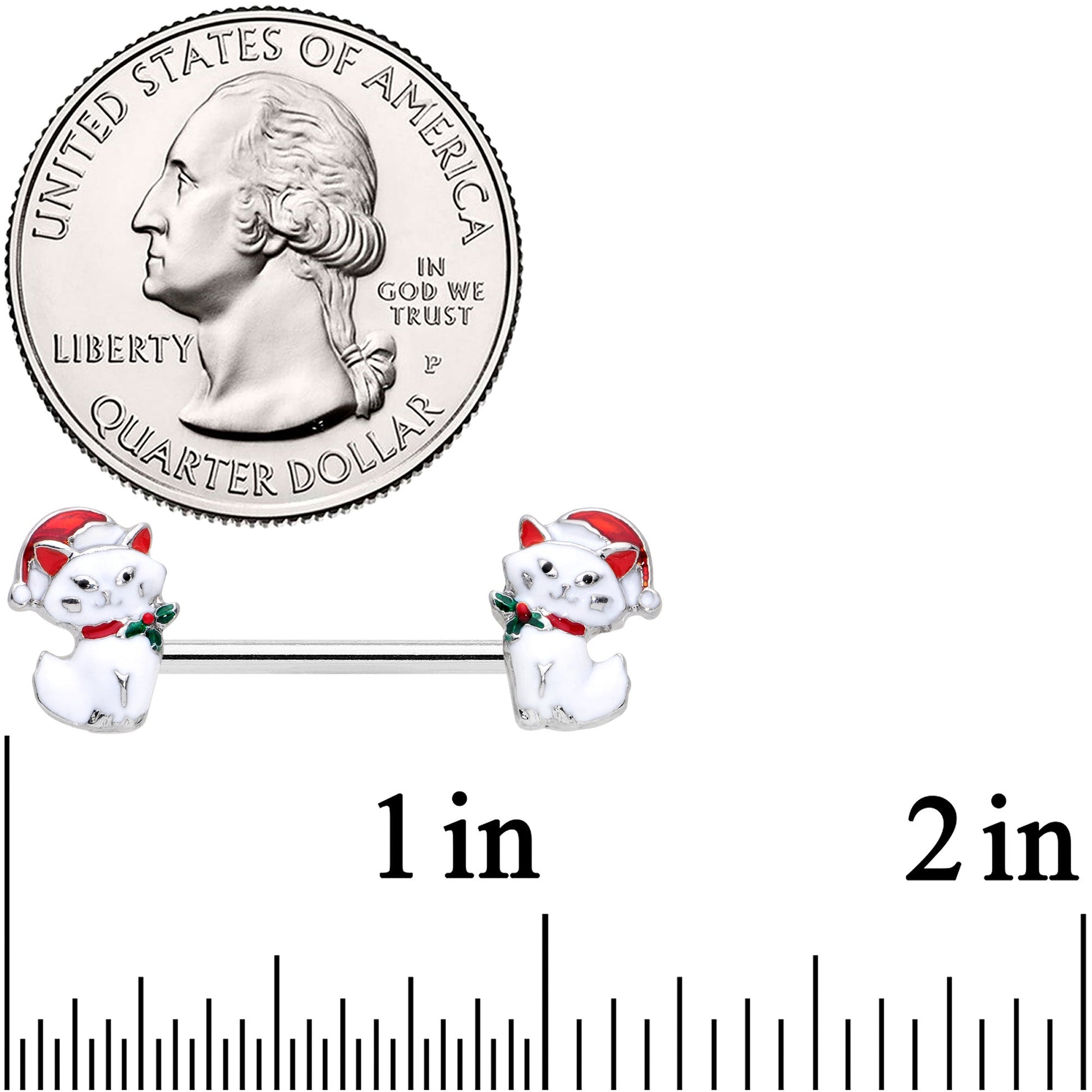 14G 9/16 White Cat Santa Hat Christmas Barbell Nipple Ring Set