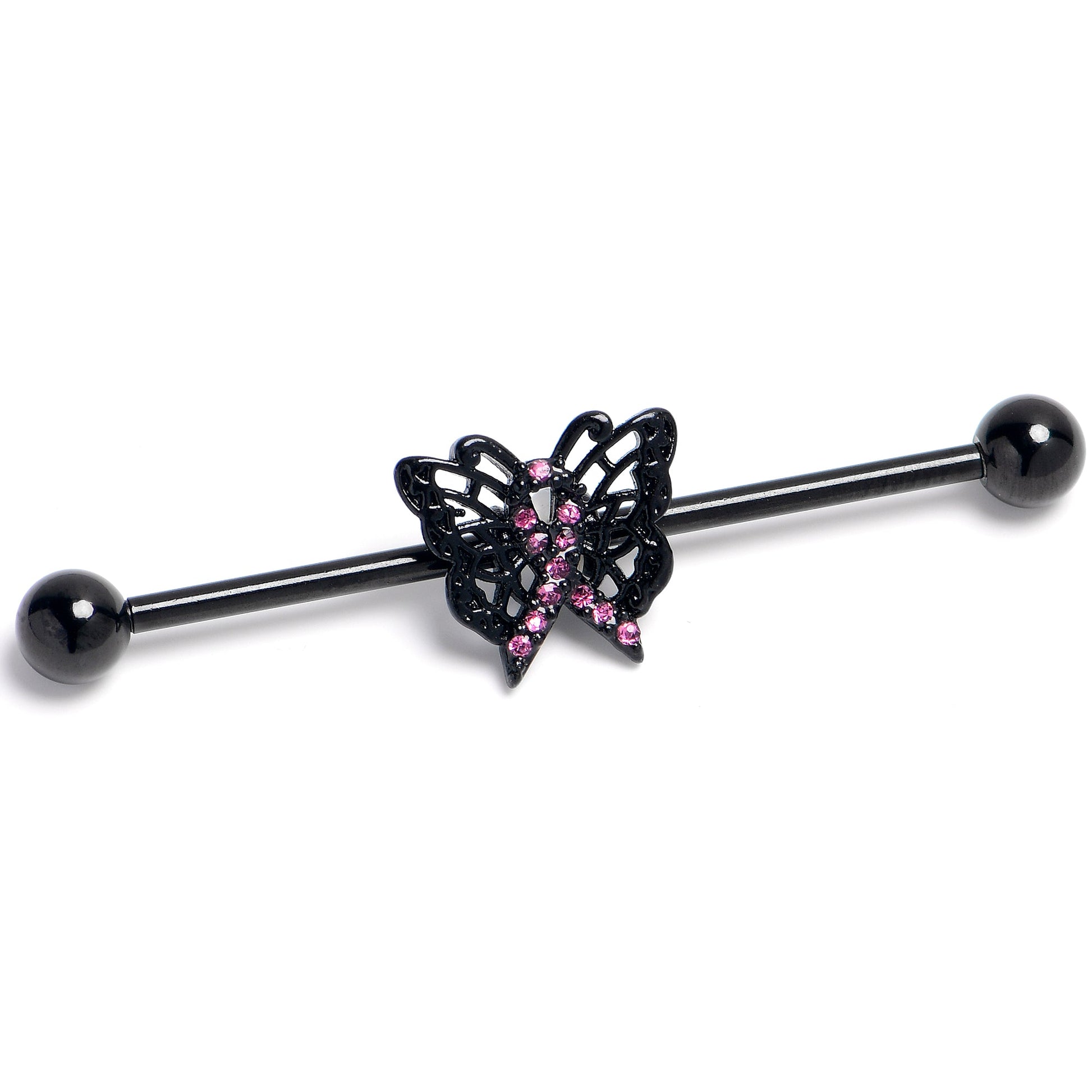 Butterfly body jewelry adds a touch of enchantment to your piercings with this 14 gauge helix barbell. It is made with a 1 1/2 inch black PVD over durable 316L surgical grade stainless steel straight barbell with 5mm ball ends. You can slide the Butterfly charm up and down the length of the barbell for the perfect look. Let this butterfly barbell earring serve as a beautiful reminder of the beauty and transformation that life has to offer.Specifications