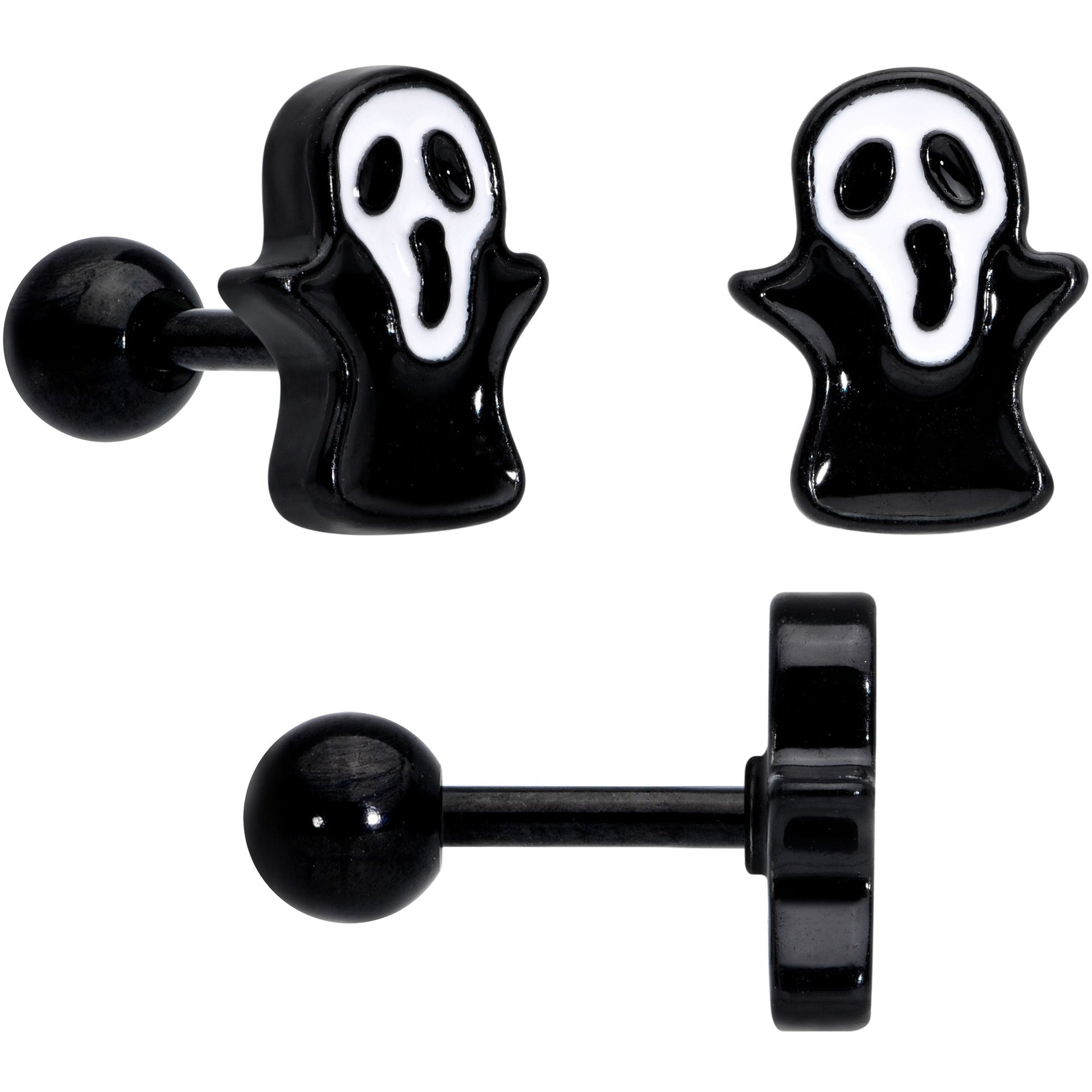 16G 1/4 Black Ghost Boo Halloween Cartilage Tragus Curation Set of 3