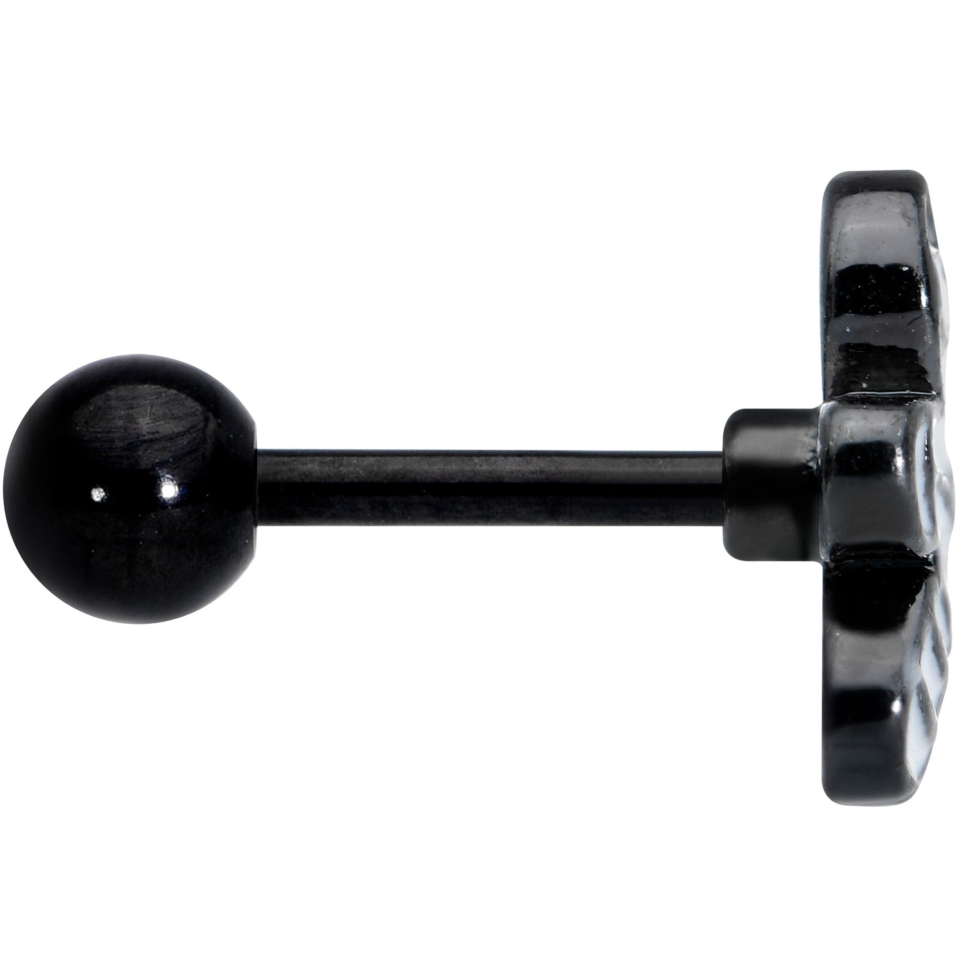 If you can't wait to share your holiday spirit this Halloween then you will love this 16 gauge tragus stud. Made with a 6mm black PVD over 316L surgical grade stainless steel straight barbell with a 4mm ball end, this cartilage stud features a red-eyed mummy charm and can be worn in piercings like the helix, tragus and some conch piercings. Happy Halloween to you!