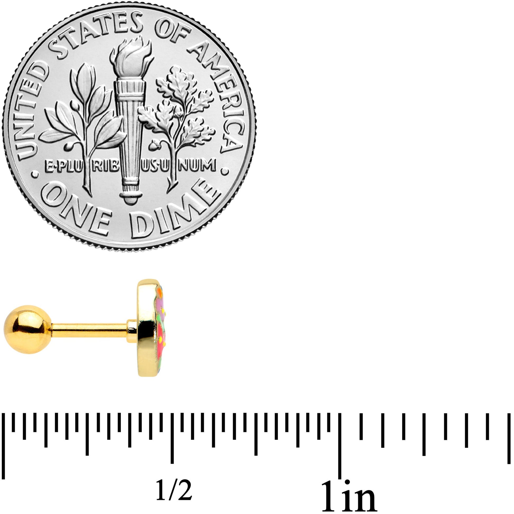 16 Gauge 1/4 Gold Tone Funky Painted Easter Egg Cartilage Tragus